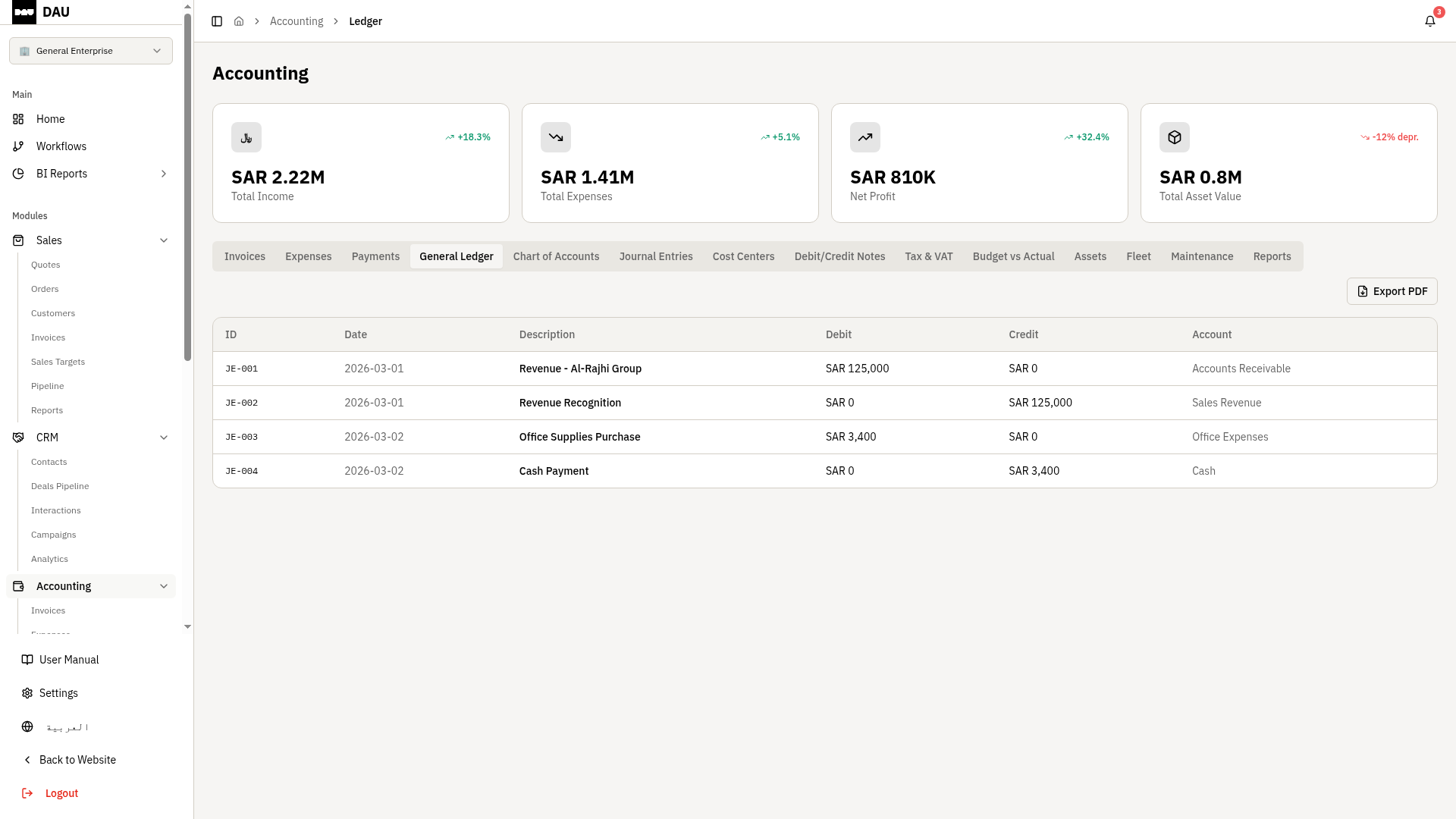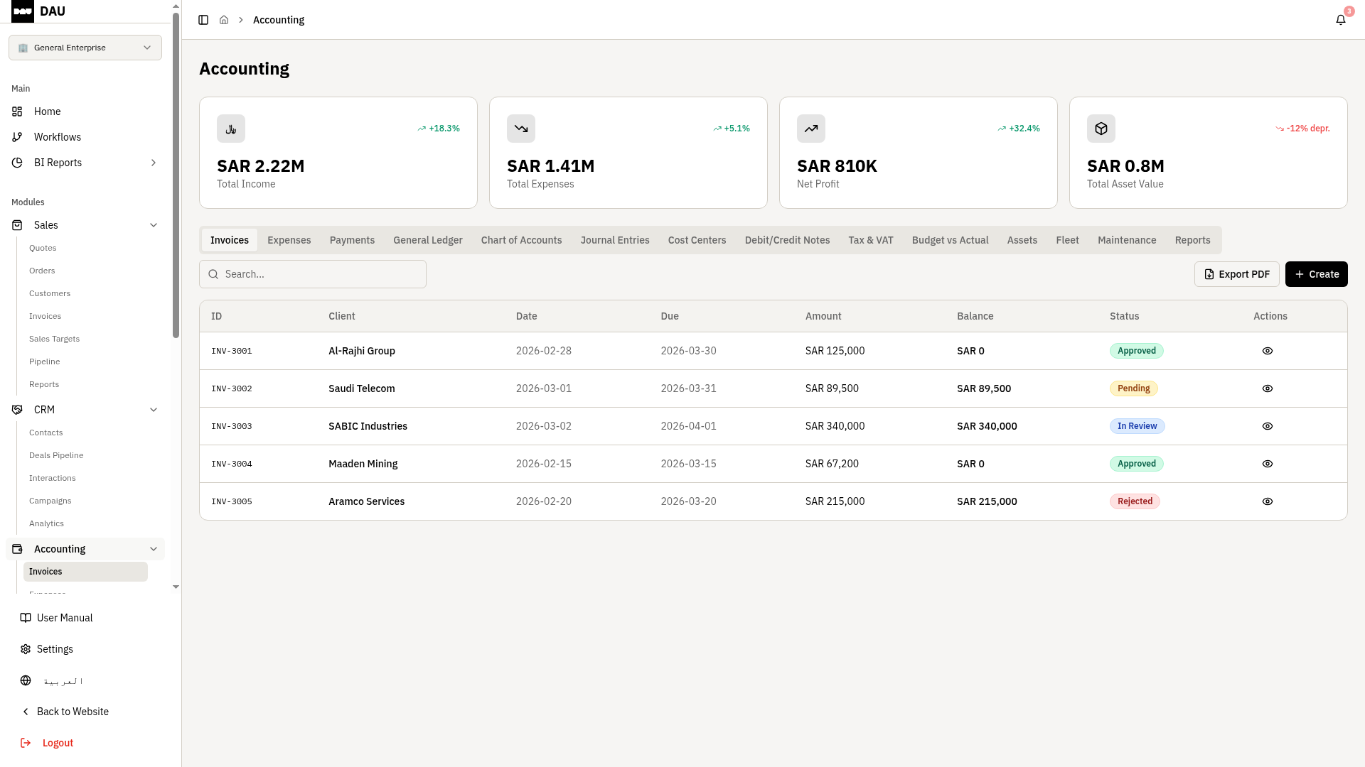 ZATCA-compliant e-invoicing, double-entry ledgers and real-time financial statements — all in one place.
