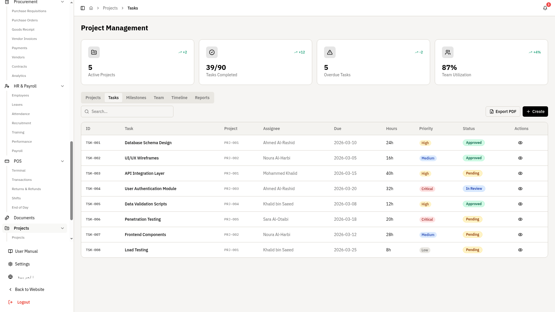 Project Management — Screens & Reports