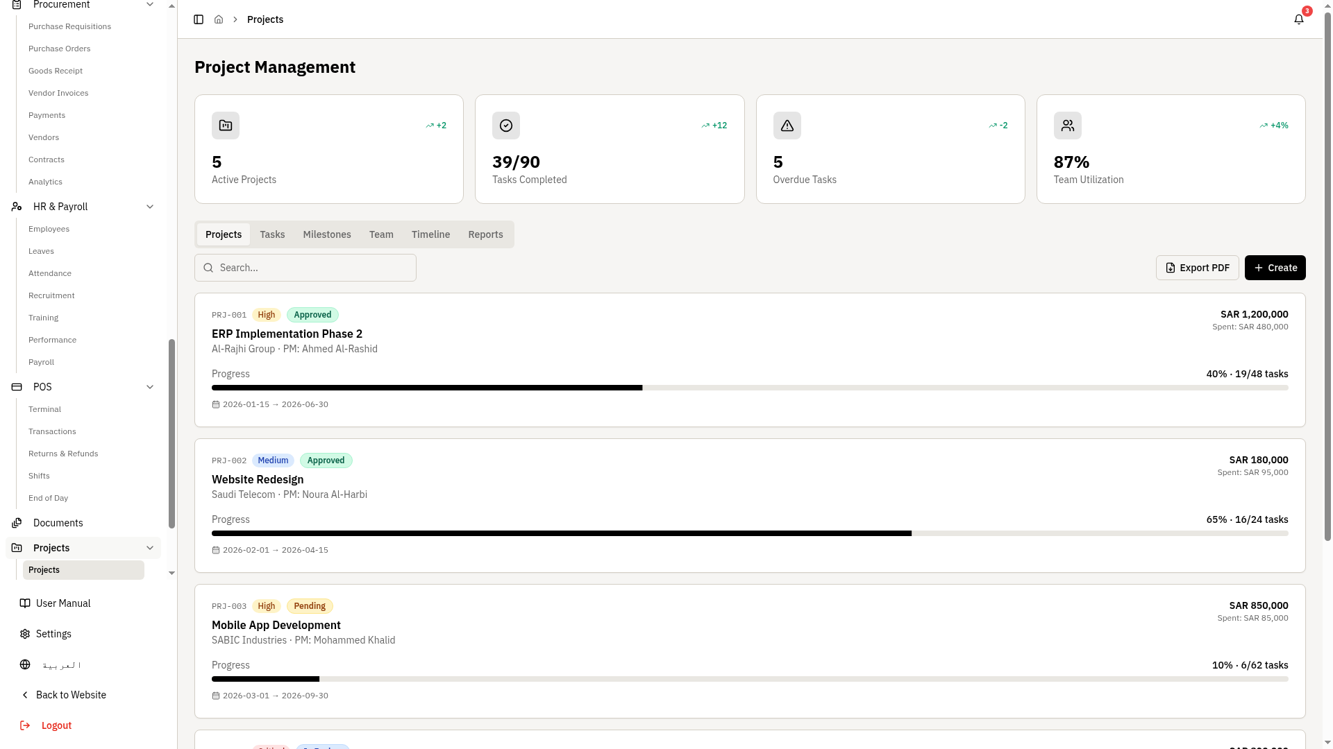 - Budget vs actuals by project