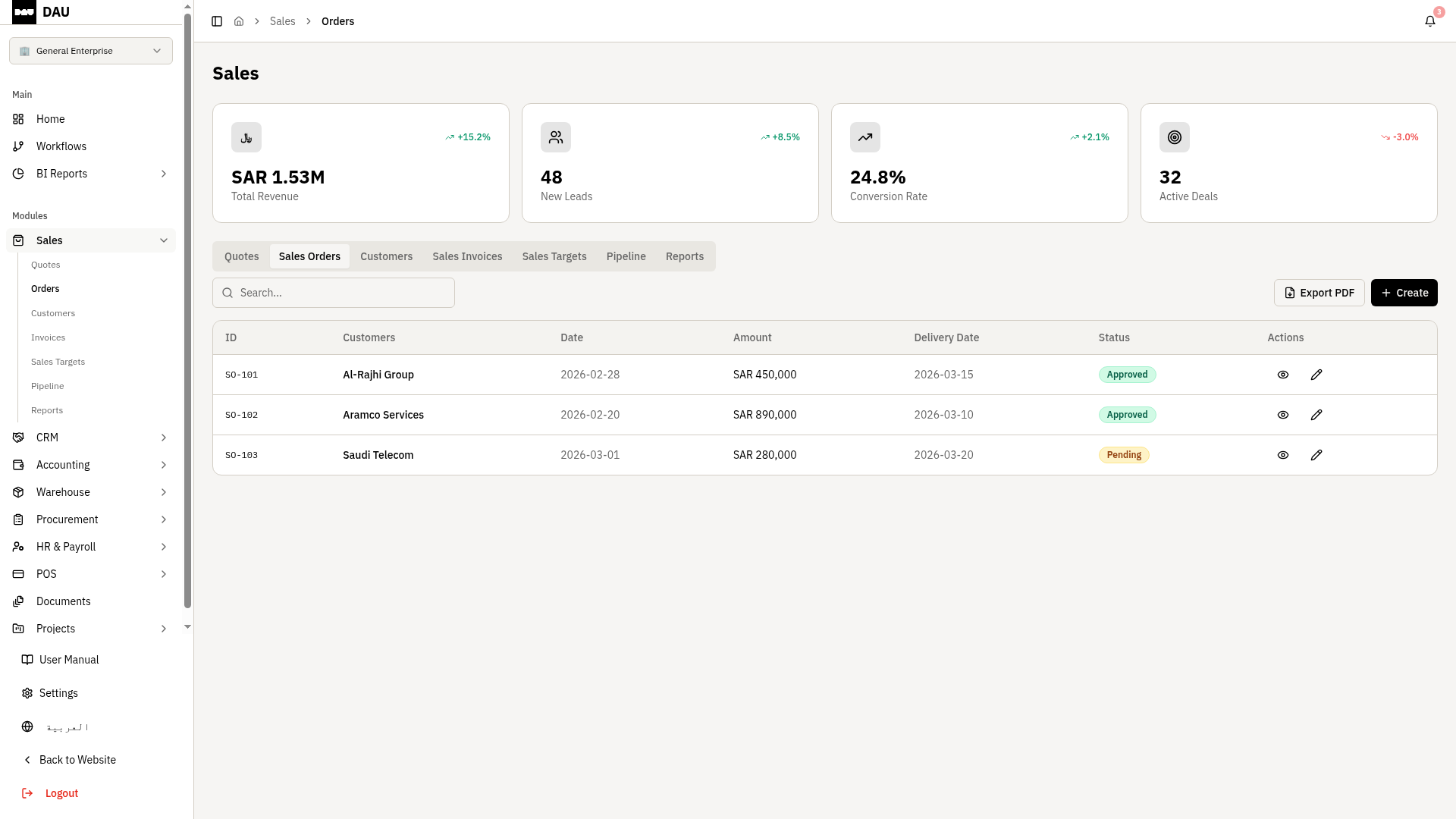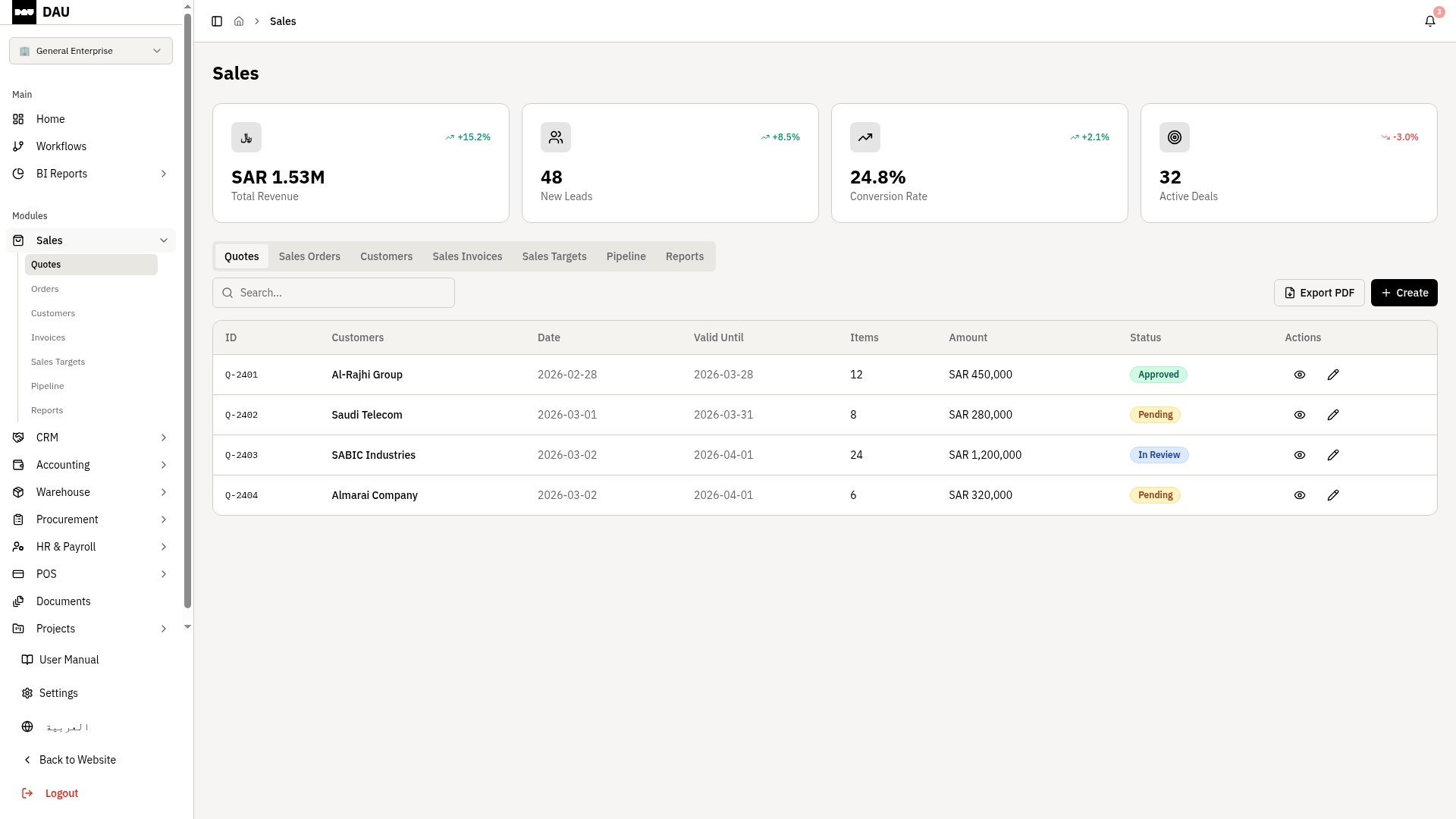 Convert quotes to orders to ZATCA-compliant invoices in one click.