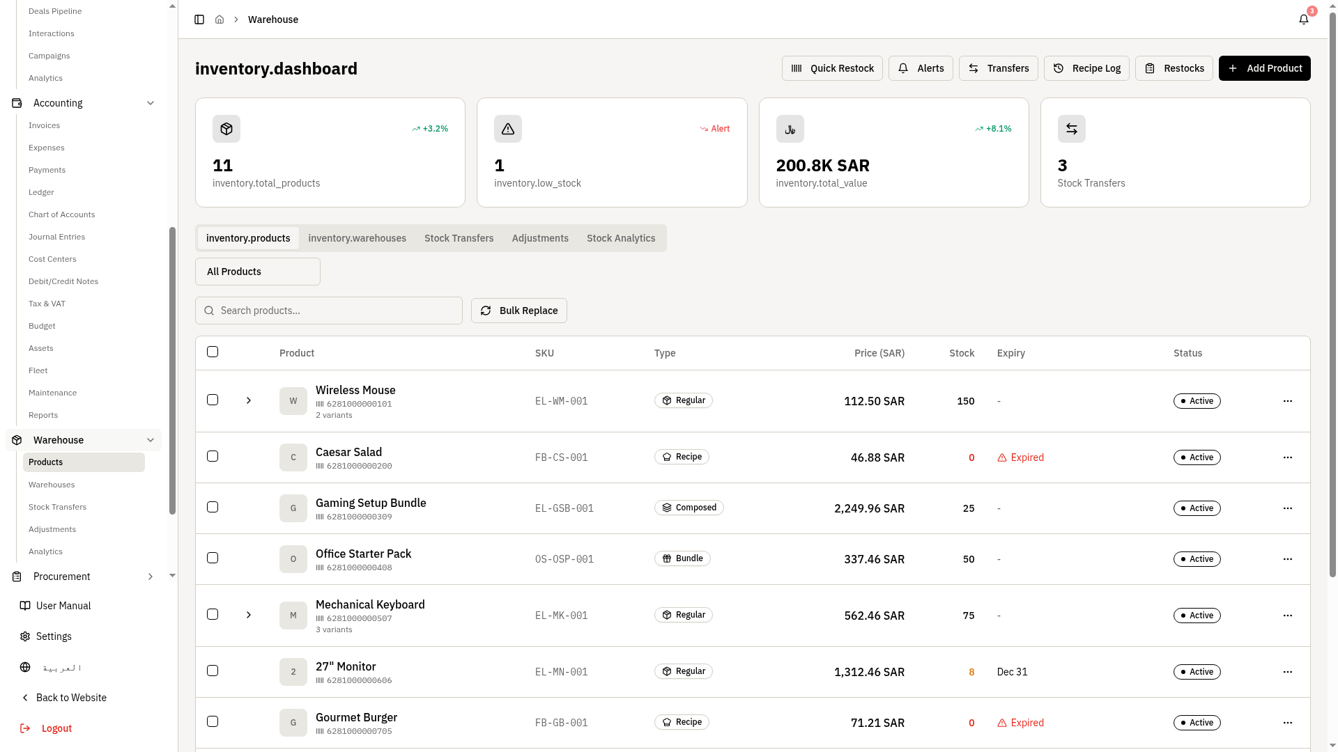 Book a demo of the Warehouse module with your SKU structure.